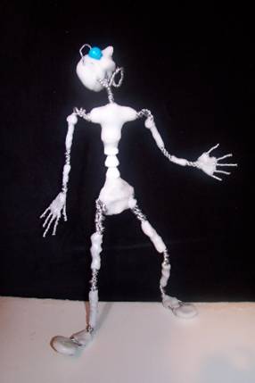 One of the biggest stumbling blocks to making a basic stop motion puppet is the technology involved in the various techniques. Not everyone has access to soldering or drilling equipment, and we don't all have the skills or studio space to make a two part plaster mould. I have put a lot of energy into finding a low cost basic approach to puppet making which allows the novice animator to begin to explore model-making for animation at their kitchen sink or sitting room sofa. This technique will provide you with a low cost puppet which will perform well, and with a few modifications could be repairable. However, it is essentially a disposable model, which will last the duration of a short film, and can be quickly and cheaply replaced.