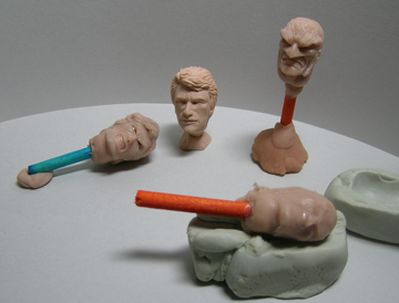 "I sculpted a basic head with no defined features and I made a squeeze mold. That way I don't have to worry about the sizes being different and I can get right down to the important details."